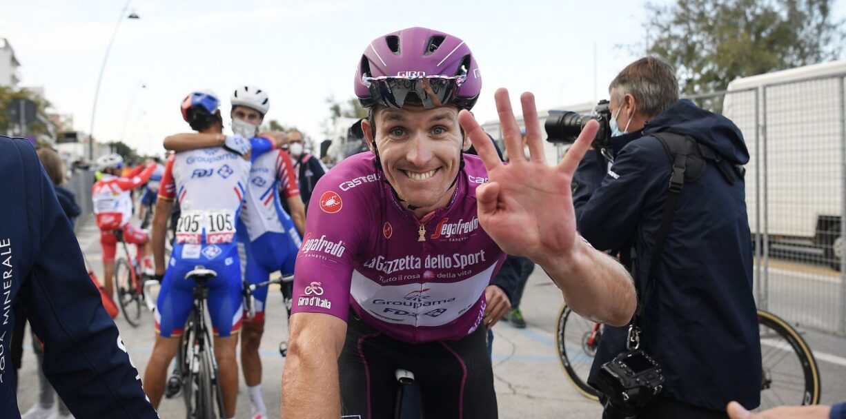 Tänavusel Girol neljanda etapivõidu pälvinud Prantsusmaa meister edestas finišijoonel eilsel etapil esimeseks tulnud Peter Saganit (Bora-Hansgrohe) ja Kolumbia ratturit Alvaro Jose Hodegi (Deceuninck-Quick Step).