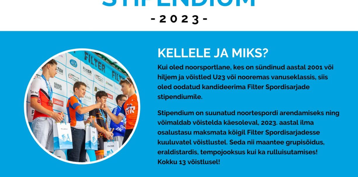 Filter Spordisarjad jagab ühele noorsportlasele, kes on sündinud aastal 2001 või hiljem ja võistleb U23 või nooremas vanuseklassis välja stipendiumi. Kandideerimise tähtaeg on 13. aprill.