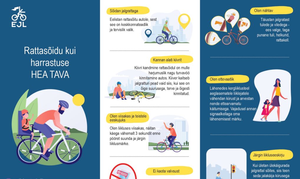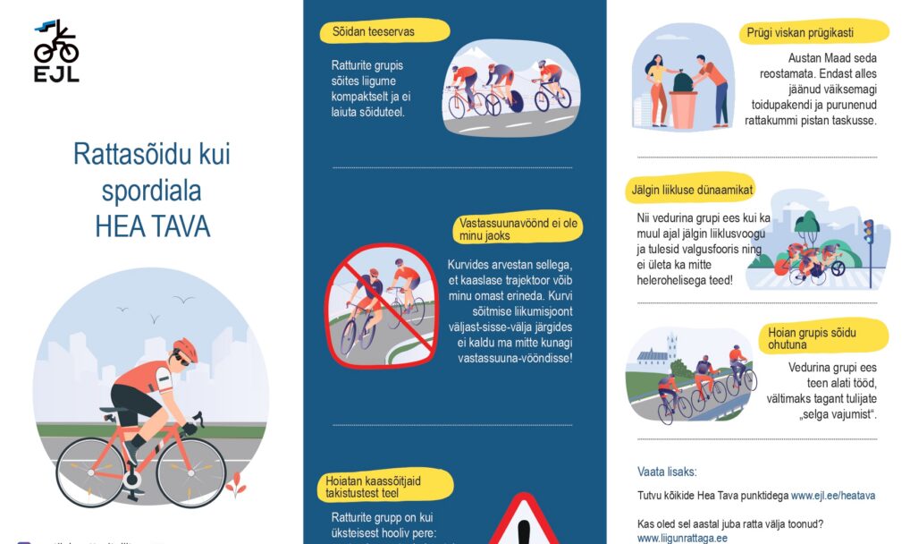 Rattasõidu Hea Tava on koostatud koostöös Eesti Jalgratturite Liidu ja Politsei- ja Piirivalveametiga. Hea Tava voldiku välja printimiseks, lae voldik alla.