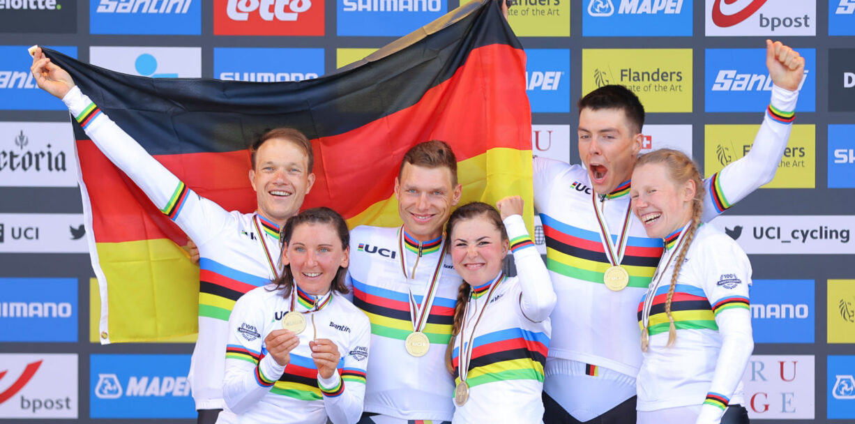 Belgias Flandrias jätkuvatel maanteeratturite maailmameistrivõistlustel krooniti segateatesõidus võitjaks Saksamaa koosseisus Nikias Arndt, Max Walscheid, Lisa Klein, Tony Martin, Lisa Brennauer ja Mieke Kröger.